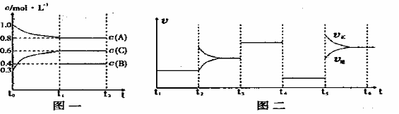 32.(16分)向一体积不变的密闭容器中加入2mol A、0.6molC和一定量的B三种气体。一定条件下发生反应,各物质浓度随时间变化如附图一所示。附图二为t2时刻后改变反应条件,平衡体系中反应速率随时间变化的情况,且四个阶段都各改变一种不同的条件。已知t3-t4阶段为使用催化剂;图一中t0-t1阶段c(B)未画出。