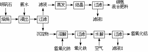 33.(15分)明矾石是制取钾肥和氢氧化铝的重要原料,明矾石的组成和明矾相似,此外还含有氧化铝和少量氧化铁杂质。具体实验步骤如下图所示: