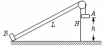 (2).(10分)如图所示,光滑斜面的长为L=1 m、高为H=0.6 m,质量分别为mA和mB的A、B两小物体用跨过斜面顶端光滑小滑轮的细绳相连,开始时A物体离地高为h=0.5 m,B物体恰在斜面底端,静止起释放它们,B物体滑到斜面顶端时速度恰好减为零,求A、B两物体的质量比mA︰mB。