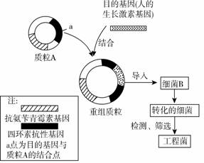 28.下图是将人的生长激素基因导入细菌B细胞内制造“工程菌”的示意图。已知细菌B细胞内不含质粒A,也不含质粒A上的基因。判断下列说法正确的是 ( )