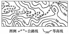 3.图中公路规划方案中能反映出山区公路建设中应遵循的原则是 ( )