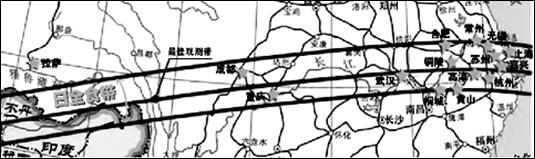 2009年7月22日我国出现500年一遇的日全食奇观。这次最精彩的日全食从上午9时至9时38分(北京时间)开始,其中西藏最早,舟山最晚。读图1并结合上述材料回答1-3题。![]()