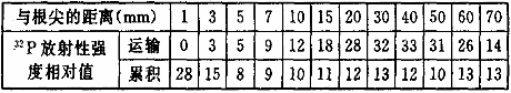 4.用含32P的完全培养液培养大麦幼苗,几天后测试大麦根尖不同区域32P的累积量和运输情况,结果如下表。以下叙述不正确的是![]()