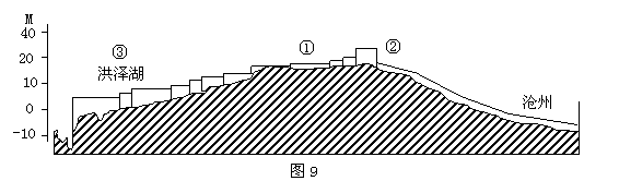 读“我国南水北调工程某路线剖面图”(图9)。回答23-25题。