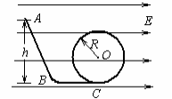 13、如图所示的装置是在竖直平面内放置光滑的绝缘轨道,处于水平向右的匀强电场中,以带负电荷的小球从高h的A处静止开始下滑,沿轨道ABC运动后进入圆环内作圆周运动。已知小球所受到电场力是其重力的3/4,圆滑半径为R,斜面倾角θ=450,sBC=2R。若使小球在圆环内能作完整的圆周运动,h至少为多少?