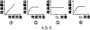 .科学家在研究细胞膜运输物质时发现有下列四种关系,分别用下图4-B-9中四条曲线表示,在研究具体的物质x时,发现与曲线②和④相符。试问:细胞膜运输物质X的方式是( )
