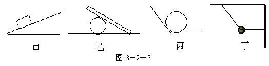 拓展:在某些接触点处有无弹力难以确定时都可以用上述的假设法判断。我们设想B处的水平地面撤消,那么球就会下落,这就说明B处是有弹力的。例如图3-2-2中要判断静止的球与光滑平面AB、BC之间是否有弹力作用?