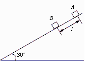 、足够长的斜面上用外力分别固定着两个相距L = 0.2m的物体A、B,它们的质量