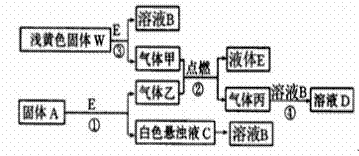 (3) C溶液中的溶质和丙以物质的量之比1:2反应时.该反应的离子方程式为 。若甲和乙恰好完全反应.则A与W的物质的量之比为 。