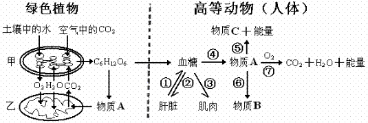 30、(16分)下图为植物和高等动物(人体)新陈代谢的部分过程示意图,请分析回答: