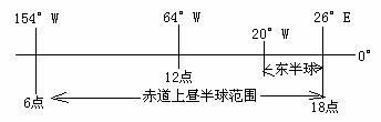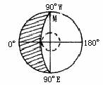 (3)当太阳光线处在a位置时,国际标准时间是20时,则该地的经度位置是( )