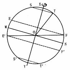 例题1:11月5日,北京(40°N、116°E)当地看到太阳升落的视运动轨迹示意图为