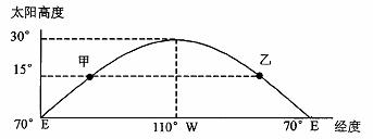 C.甲、乙两地太阳高度最大值为15°
