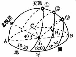 (1)图中a、b、c、d分别表示地平圈上的四个方位,其中代表南方的是