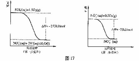 (2)过程Ⅱ:在微生物作用下,NH4+经过两步反应被氧化成NO3-。两步反应的能量变化示意图如下:(参看图17)