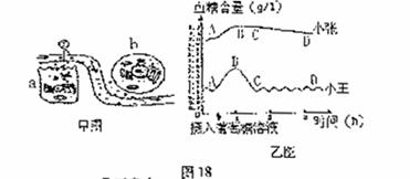 I.如图18所示,甲图为某种激素分泌、运输和作用的模式图,乙图为糖尿病患者和正常人在摄取葡萄糖后血糖含量的变化曲线。据图回答: