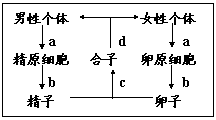 2.下图中a、b、c、d表示人的生殖周期中不同的生理过程。下列说法正确的是:![]()