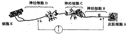 18.如图为一些细胞间的联系,a、b为置于神经细胞B和神经细胞D的膜外的电流计的两个微型电极,下列有关叙述中不正确的是 :![]()