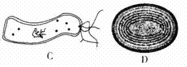 (1)A-D图中,图 是幽门螺杆菌结构模式图,其区别于酵母菌的最主要的结构特点是 。
