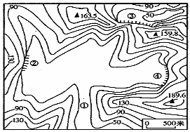 29.瀑布形成条件之一是河流,之二是落差。读某地区等高线地形图,分析图中可以看到瀑布景观的地点最有可能是