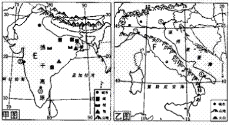 37.(5分)图甲、乙分别为“印度和意大利的地理简图”,读图回答: