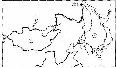 38.(4分)读下图,填写图中数码号所代表的地理事物名称: