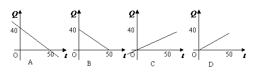 一水池蓄水40m3,从一管道等速流出,50min流完,则水池的剩余水量Q(m3)与流出时间t(min)的函数关系图象可表示为