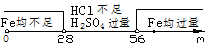 ② 当m≥56g, 两种酸均能完全反应,放出H2量H2SO4是HCl的2倍.