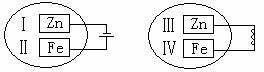 把锌片和铁片放在盛有稀食盐水和酚酞试液混合溶液的玻璃皿中(如图所示平面图),经过一段时间后,两个实验中,首先观察到溶液变红的区域是( )