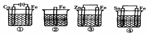 12、下图各容器中盛有海水,铁在其中被腐蚀时由快到慢的顺序是( )