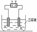 右图中x、y分别是直流电源的两极, 通电后发现a极板质量增加,b极板处有无色无味气体放出, 符合这一情况的是( )