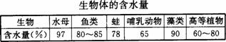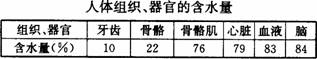 4.下表分别是生物体及人体组织、器官的含水量。对表中据分析可得出的正确结论是 i