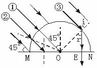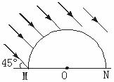 ,当光由玻璃射向空气时,发生全反射的临界角为45°.一束与MN平面成45°的平行光束射到玻璃的半圆柱面上,经玻璃折射后,有部分光能从MN平面上射出.求能从MN射出的光束的宽度为多少?