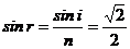 最右边射向半球的光线③与球面相切,入射角i=90°.