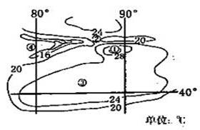 2.下图为某地区七月等温线分布图,若在该地区①②③④四处中选择一处建设大型风力发电站,位置最佳的是