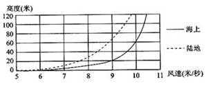 作为一种清洁能源,风能的开发越来越受到人们的关注。读陆地与海上风速剖面比较图(下图),回答