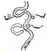 7、据图中信息,判断②→③河段,河流的主要流向( )