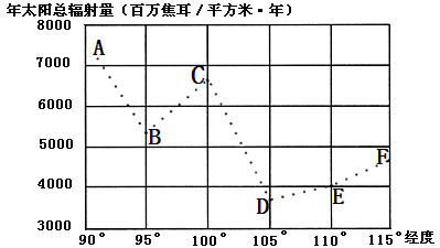 ,D地区比我国同纬度其他地区年太阳总辐射量低的原因是 。(2分)