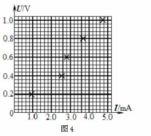 ③作图:由实验测得5组数据,图4中的5个“×”点表示该实验中测得的5组电压U、电流I的值,由图像可得该电阻的阻值Rx= Ω。(结果保留三位有效数字)