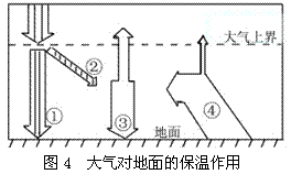 [解析]此题主要考查学生对大气保温作用基本原理的理解和应用情况。学生首先要明确大气逆辐射补偿了地面辐射损失的热量,从而能根据图中各箭头所示的含义,判断出③箭头表示大气补偿了地面辐射损失的热量。本题属于中等难度题。