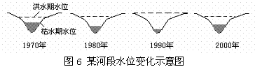 [解析]此题要求学生分析1990年到2000年水位季节变化减小的原因。主要考查学生能否正确理解地理环境各要素的相互关系及地理环境的整体性特征。由于植被具有涵养水源、保持水土的生态功能,植被覆盖率的提高将使河流水位季节变化减小。此题意在引导学生认识合理的人类活动对流域可持续发展的意义。本题属于中等难度题。