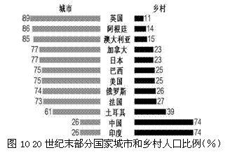 图10为“20世纪末部分国家城市和乡村人口比例(%)”,完成21-22题。