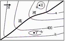 读某地等高线图(等高距:100米)回答4-5题。