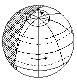右图是一架飞机从②处起飞时的地球光照图(阴影部分为黑夜,非阴影部分为白天),已知①地所在经度为135°W。据此回答8-11题。