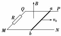 (2)由能量转化与守恒定律知,闭合电路在此过程中产生的焦耳热:Q总=mv02-m(v0)2=mv02