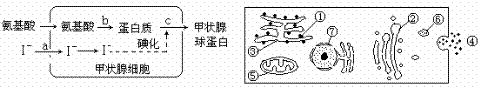 28.甲状腺细胞可以将氨基酸和碘合成甲状腺球蛋白,并且将甲状腺球蛋白分泌到细胞外,其过程如下图所示。下列叙述错误的是