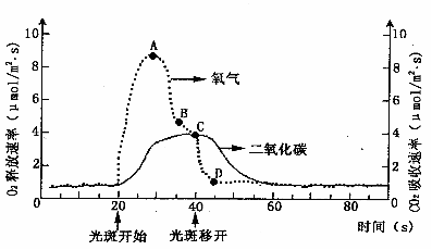 (1) 描述光斑开始照射后的5秒内,O2释放速率和CO2吸收速率的变化: 。