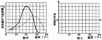 (6)根据甲图,在乙图的坐标上画出植物在15-60℃范围内的净光合作用速率的变化曲线。