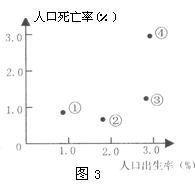 读人口出生率与死亡率的统计图(图3),回答14-15题。![]()