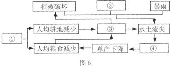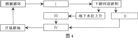 ①水土流失 ②粮食产量下降 ③土壤盐渍化 ④洪涝灾害增多![]()